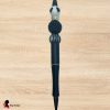 Pen twists open at the bottom and writes in black ink. Pen is also refillable.